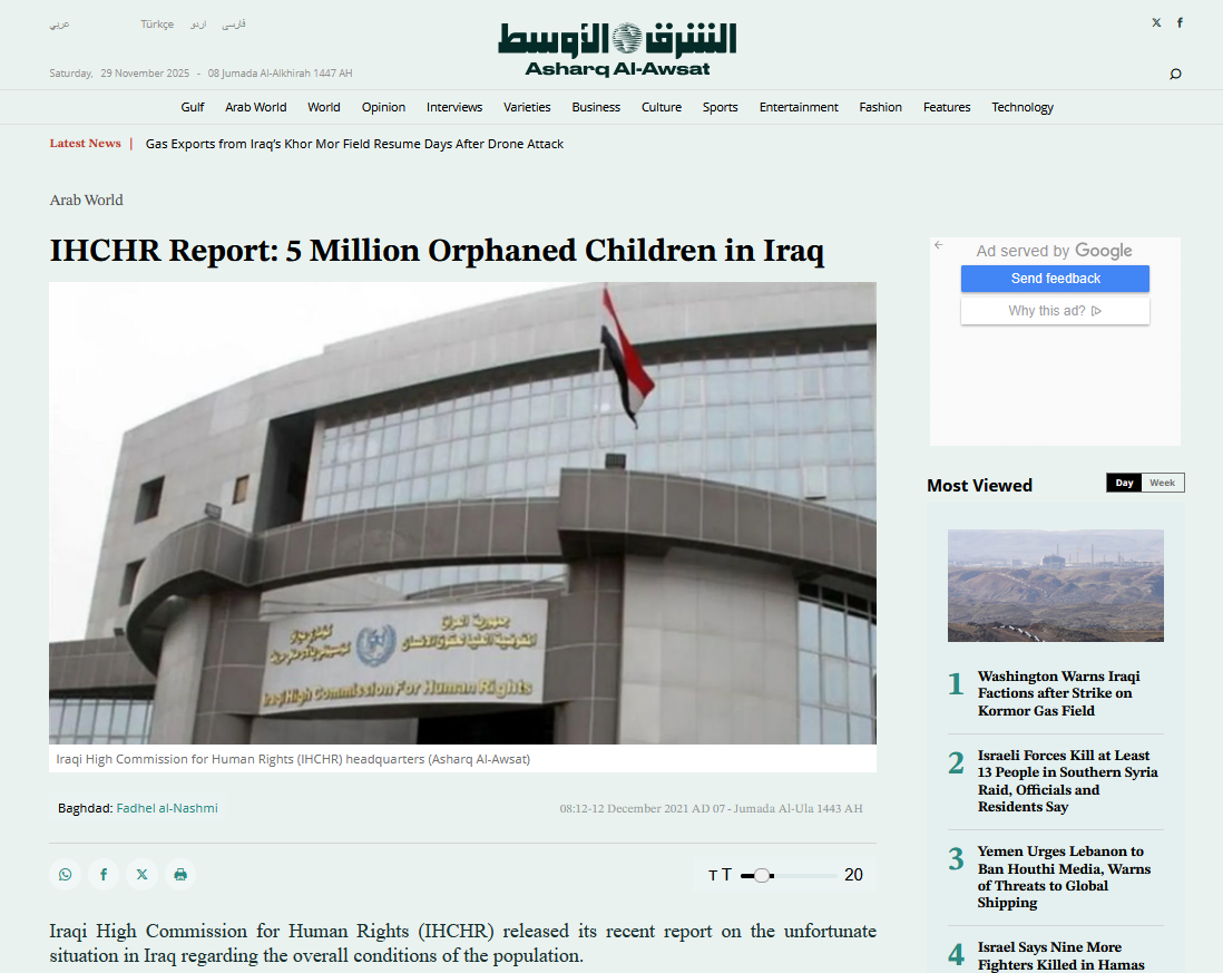 The number of Iraqi orphans is estimated to be five million (5% of all orphans worldwide), and nearly the same number of young people live in poverty (Human Rights Report, 2021). Over 4.1 million people—half of them children—need humanitarian assistance.6 Feb 2023